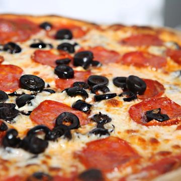 Mozzarella, jamón york, aceitunas negras, champiñones, alcachofas